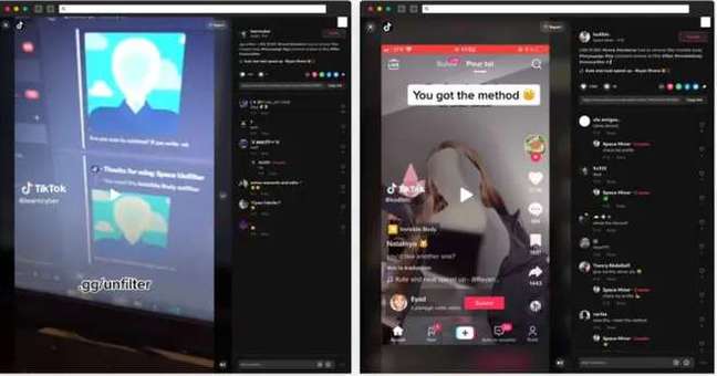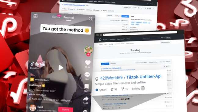 Vídeos no TikTok promovem alertas ou dicas sobre a remoção do filtro do "corpo invisível", levando os usuários a downloads maliciosos por meio do GitHub e Discord (Imagem: Reprodução/Checkmarx)